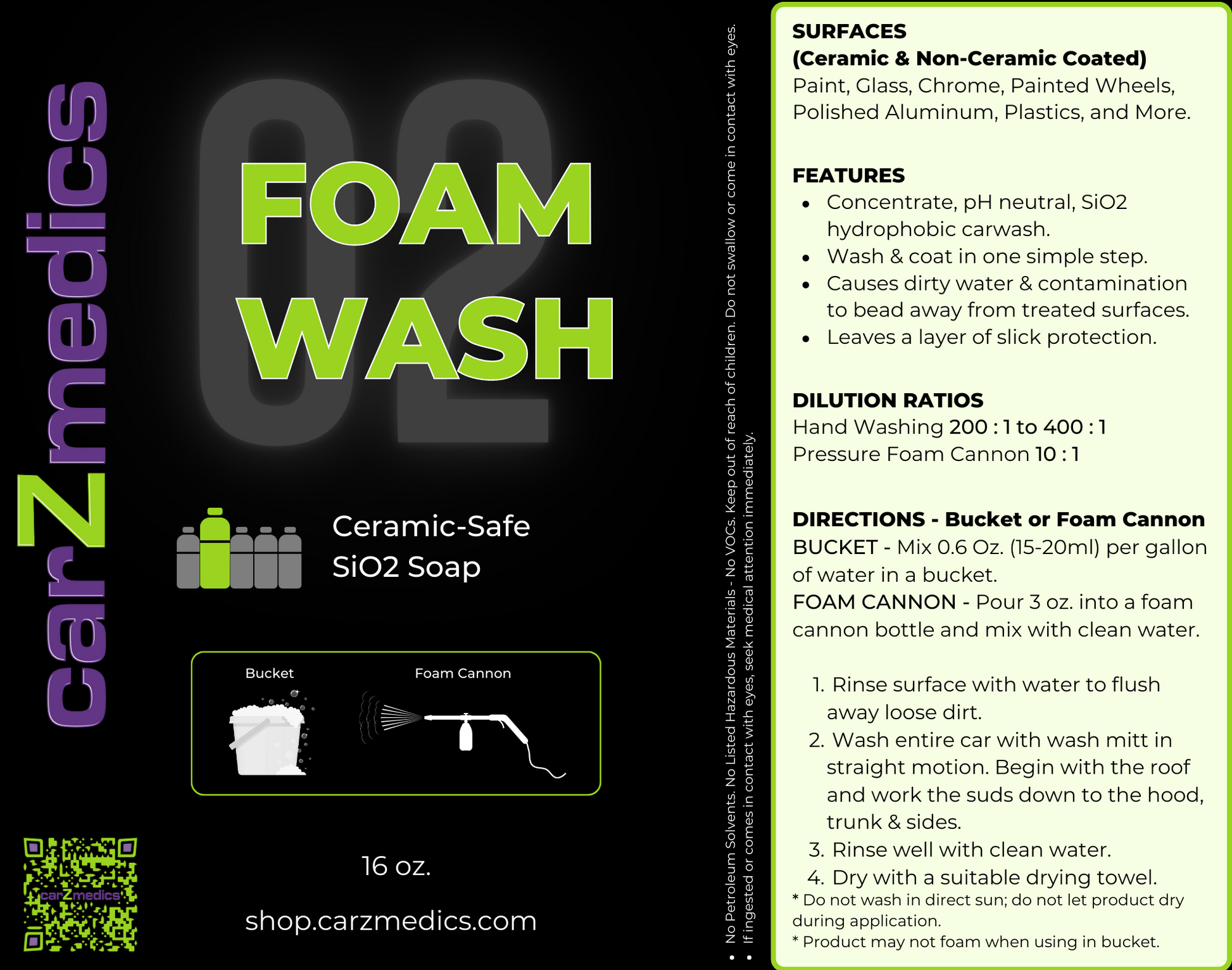 • Unique formula creates a thick clinging foam which rinses away to leave a hydrophobic finish