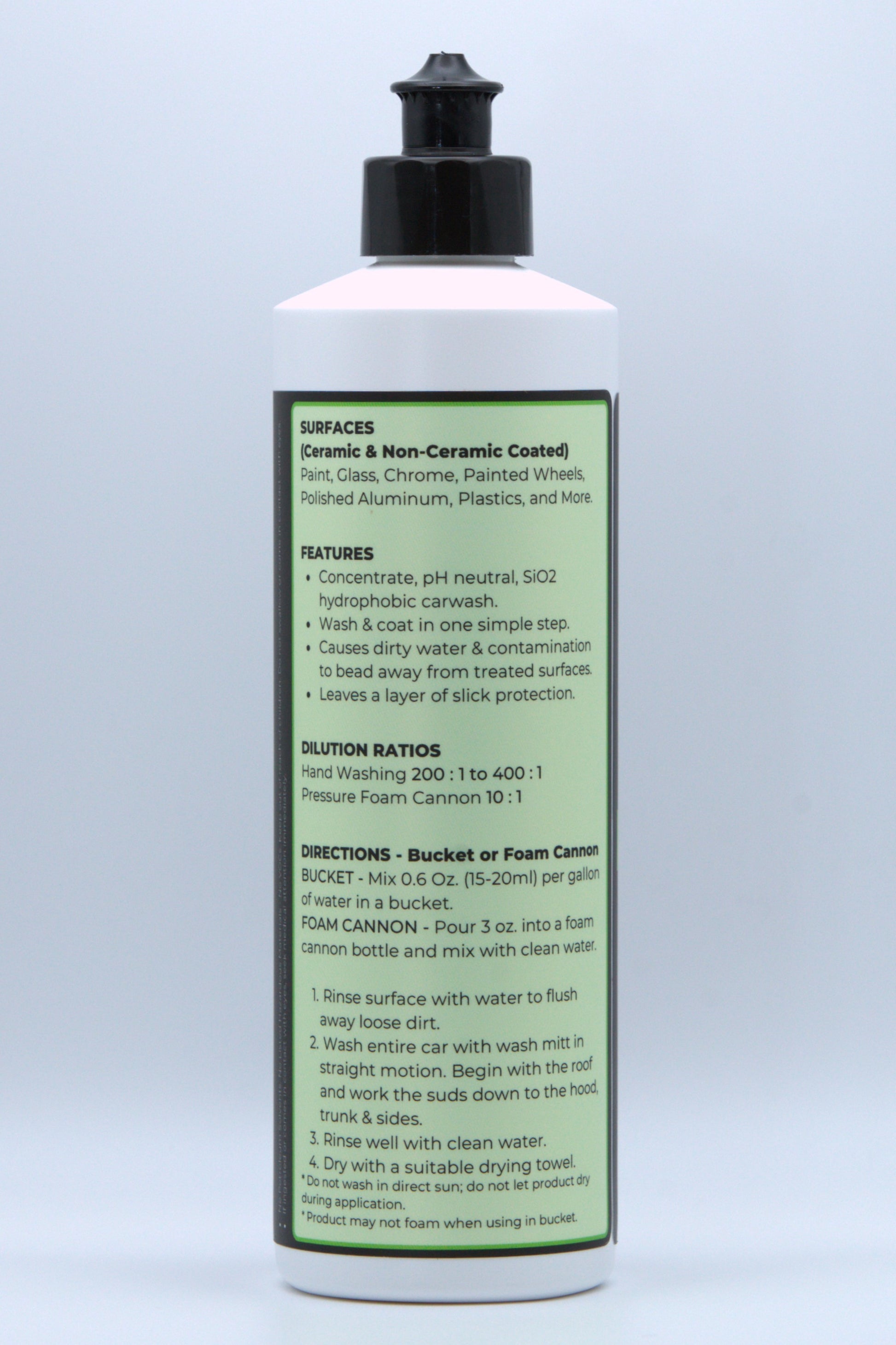 • Concentrate, pH neutral, SiO2 hydrophobic carwash.