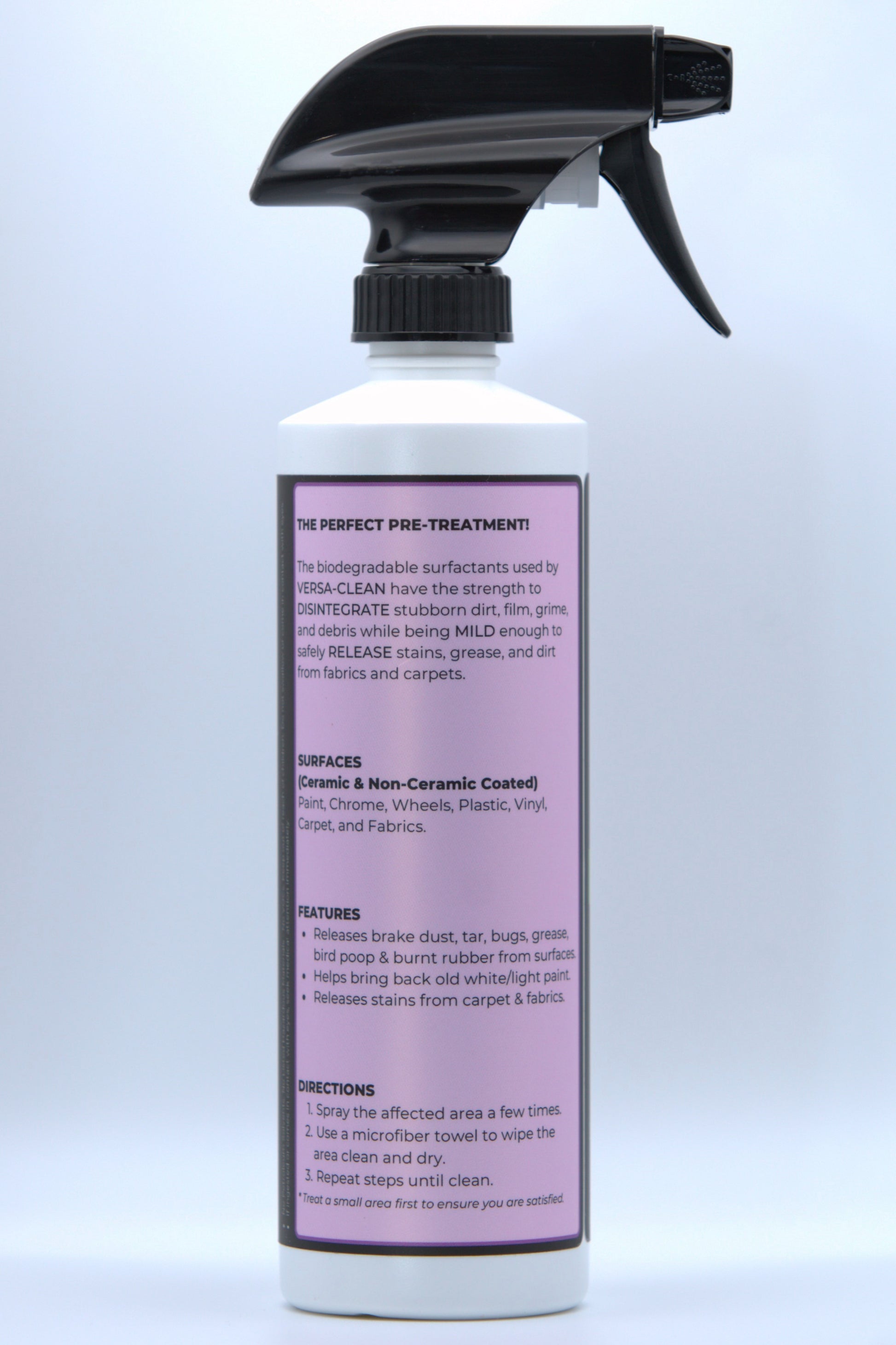 The biodegradable surfactants used by VERSA-CLEAN have the strength to DISINTEGRATE stubborn dirt, film, grime, and debris while being MILD enough to safely RELEASE stains, grease, and dirt from fabrics and carpets.